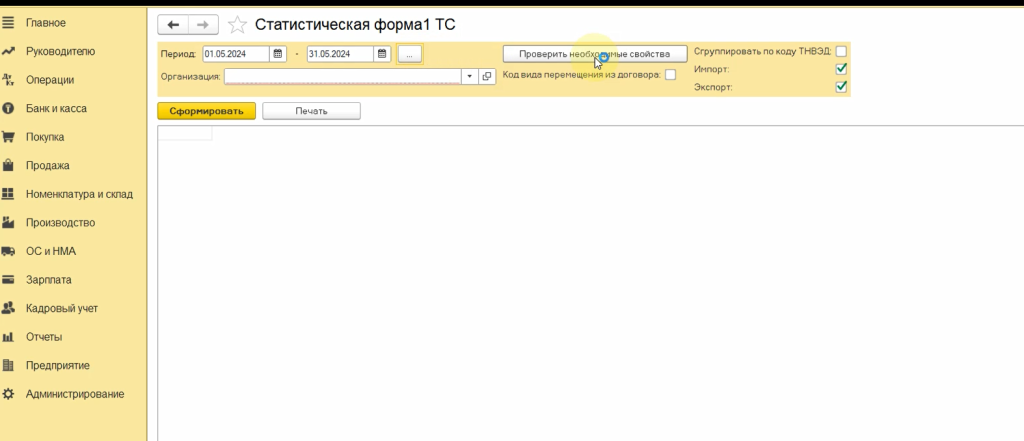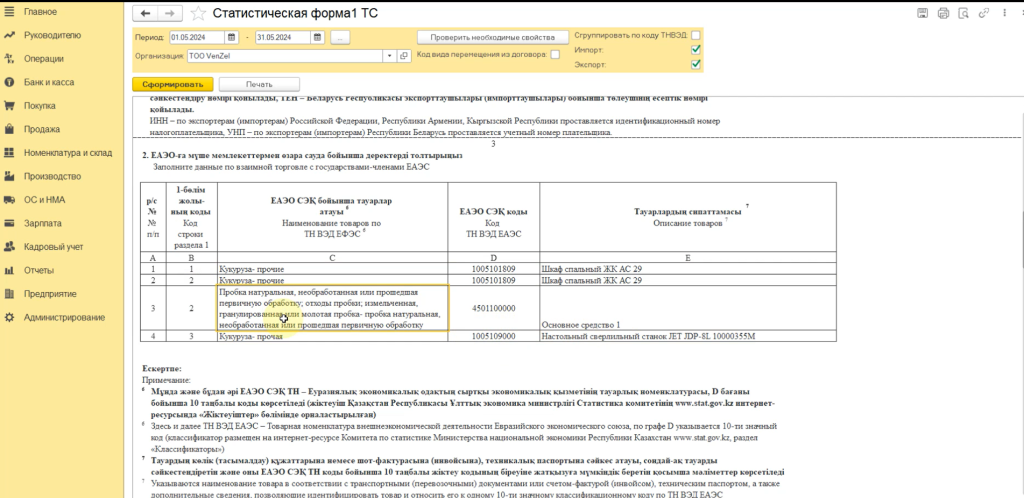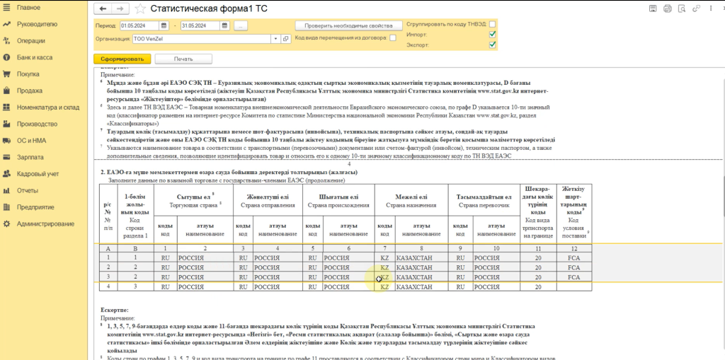 Статистическая форма 1 ТС в 1С:Бухгалтерия для Казахстана