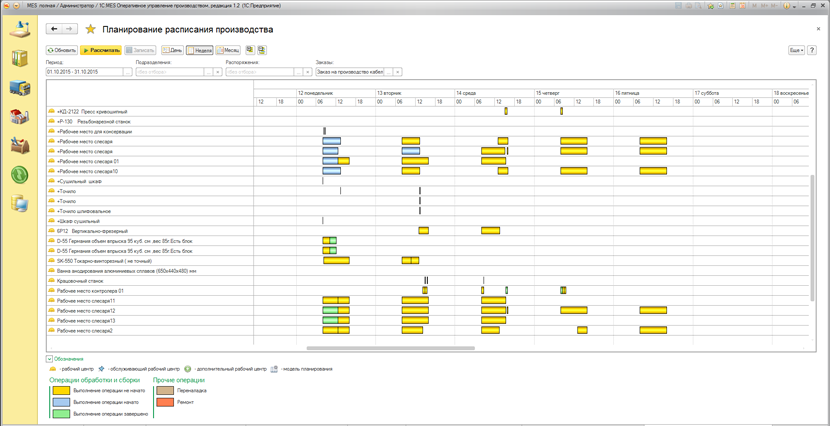 Расписание формируется с учетом доступности ресурсов – как технологических, так и материальных. К технологическим ресурсам относятся основные рабочие центры, обслуживающие рабочие центры (спецоснастка, бригада и т.п.), к материальным – материалы и полуфабрикаты.