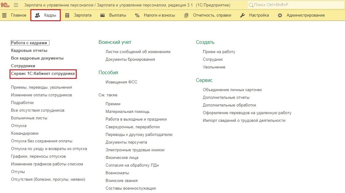 Как подключить сервис 1С:Кабинет сотрудника в программе 1С:ЗУП ред. 3.1
