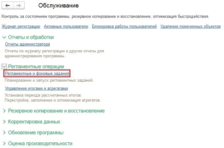 Для синхронизации работы сервиса 1С:Кабинет сотрудника и 1С:ЗУП используется регламентное задание «Обмен с сервисом 1С:Кабинет сотрудника». Для этого нужно зайти в меню «Администрирование», выбрать раздел «Обслуживание», перейти в «Регламентные операции» и далее в «Регламентные и фоновые задания».